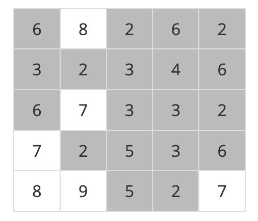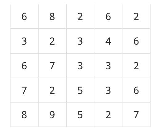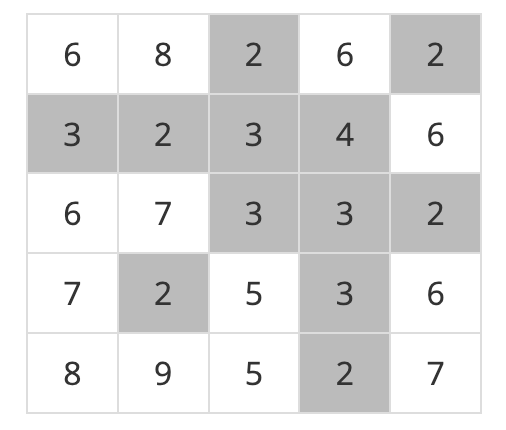 n x n의 2차원 배열로 주어지는 지역이 있다. 비가 내려서 특정 높이 이하의 지역이 모두 물에 잠긴다면, 남은 지역에서 서로 인접한(상하좌우) 영역들 중 잠기지 않은 안전 영역의 개수를 구하는 문제다. 대각선으로 붙은 지역은 인접하지 않는 걸로 본다. 높이는 최대 100까지의 자연수이다.